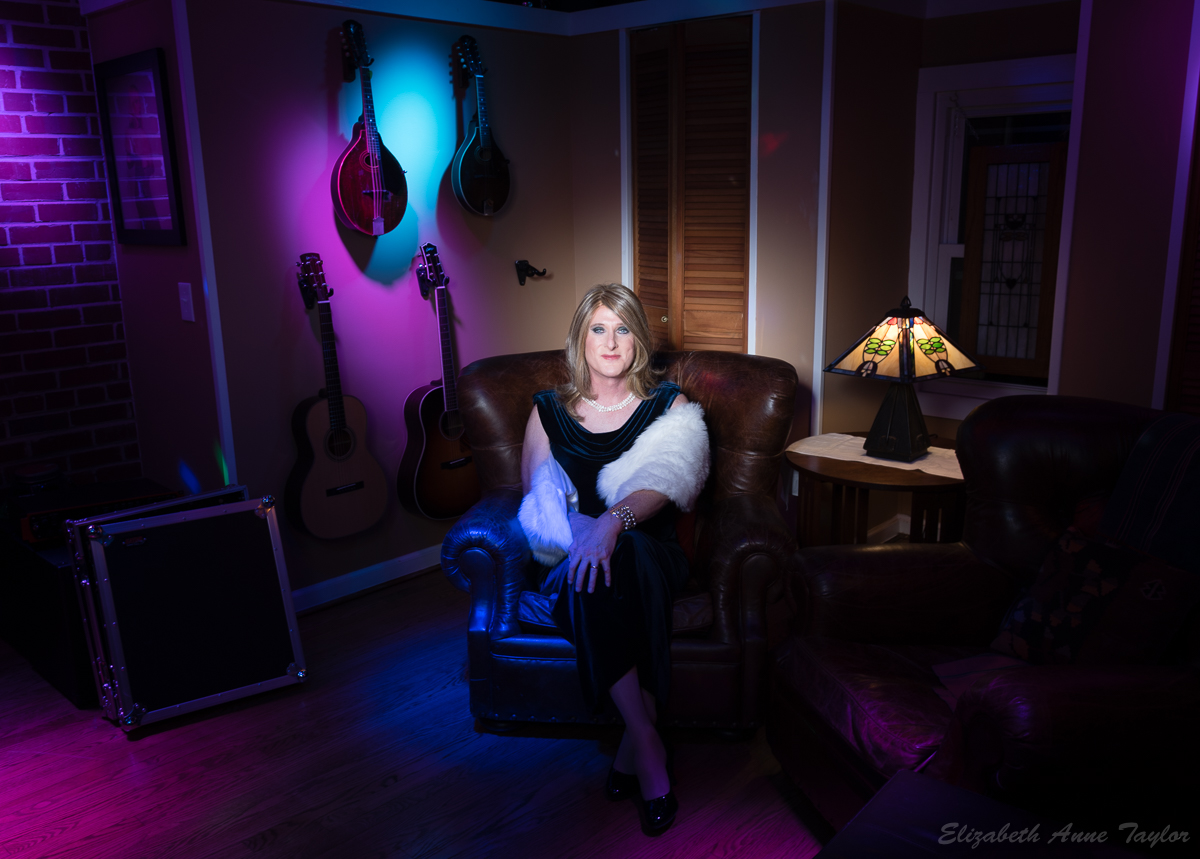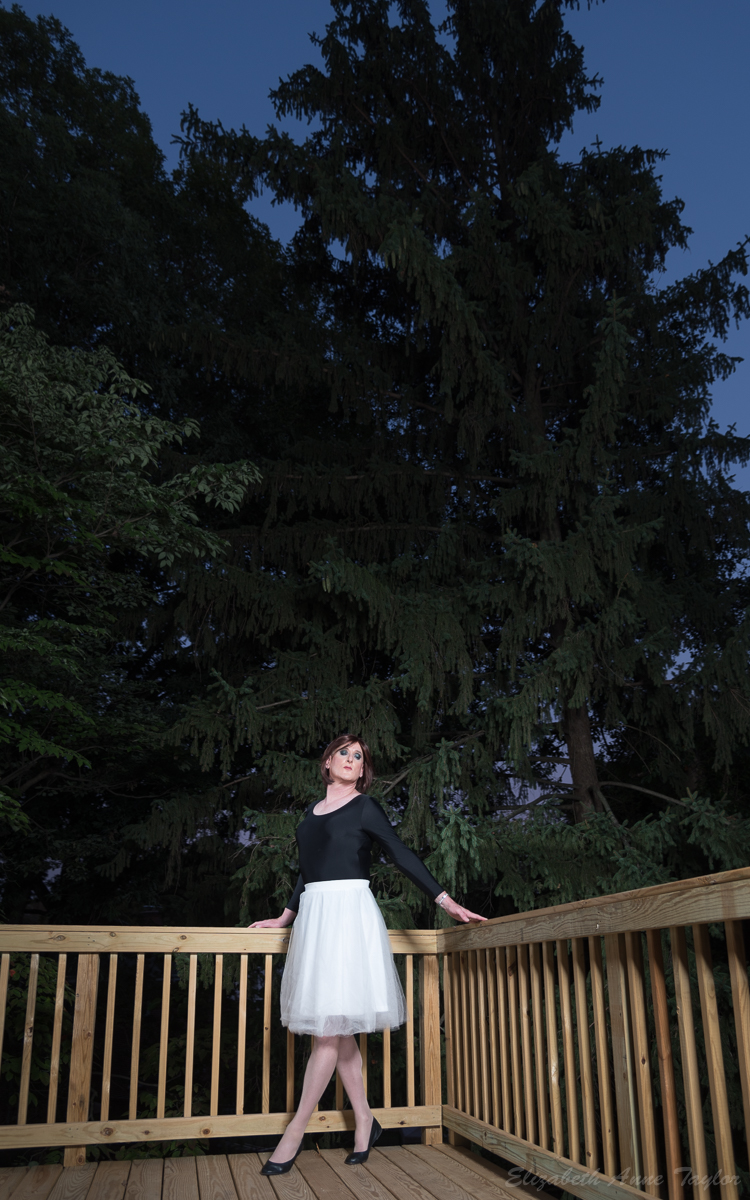 As a Navy veteran, Allison wanted some photos in tribute to her service as shown by her service dress blue jumper. After her patriotic photos, we went for a casual purple and blue dress that hit at the mid-thigh topped with a blue sweater. Then we did a few ballerina photos on the back deck followed by a glamorous look in a blue velvet dress on the deck and in our “girl cave.”