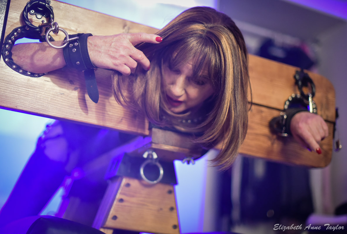 Beautiful! Love the light bondage and the leather skirt with thigh high stockings! Very sexy!